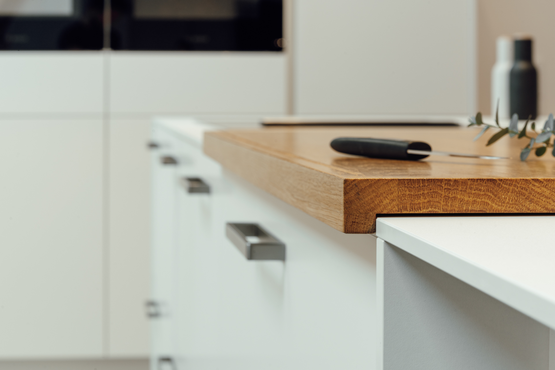 In unserer schnelllebigen und zunehmend kommerziellen Gesellschaft sehnt sich manch einer nach einer Rückbesinnung auf alte Werte aus unkomplizierteren Zeiten. Dieser Kerngedanke manifestiert sich im Küchendesign in Form einer schlichten, geraden Linienführung der pflegeleichten, weißen Oberflächen. Diese integrieren nahtlos die bereits vorhandenen, hölzernen Bauelemente des Raumes, wodurch sein charmanter, rustikaler Scheunencharakter erhalten bleibt. Die schwebenden Schränken komplementieren mit ihrer leicht wirkenden Optik die offene, gemütliche Raumgestaltung.